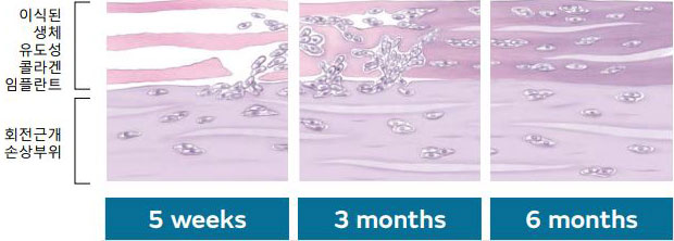 리제네텐 콜라겐 임플란트는 파열된 회전근개 부위에 콜라겐 패치를 덧대어 새로운 힘줄로 성장할 수 있게 지원하고 6개월 이내 점진적으로 흡수되어 새로운 힘줄과 같은 조직층으로 바뀝니다.